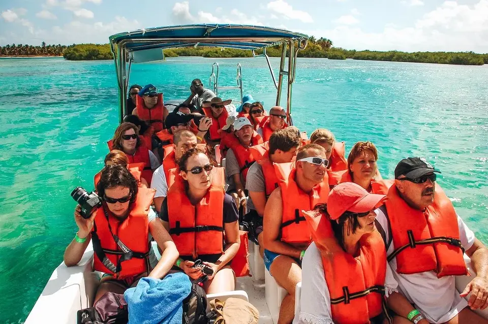 Nos diferenciamos de otros grupos turísticos al operar con grupos pequeños y mantener flexibilidad en el orden de los puntos destacados del itinerario. Esto nos permite priorizar la seguridad, comodidad y disfrute de nuestros huéspedes. A menudo ajustamos el orden de las paradas para evitar multitudes y posibles lluvias. Típicamente, visitamos Canto de la Playa y Mano Juan primero para evitar las olas más altas, que suelen ocurrir por la tarde, y para evitar otros grupos turísticos. Nos reunimos en nuestro centro de visitantes en la playa de Bayahibe, desde donde abordamos la lancha rápida y comienza la aventura.